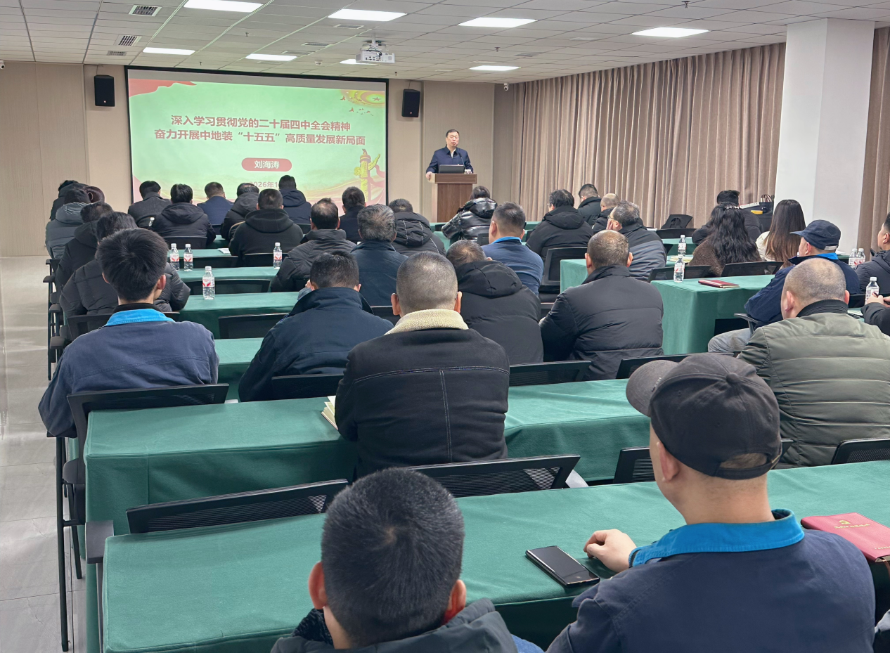 1月21日上午,中地裝集團(tuán)黨委副書(shū)記、總經(jīng)理劉海濤赴重慶地裝,以“深入學(xué)習(xí)貫徹黨的二十屆四中全會(huì)精神 奮力開(kāi)展中地裝‘十五五’高質(zhì)量發(fā)展新局面”為主題講授專題黨課。